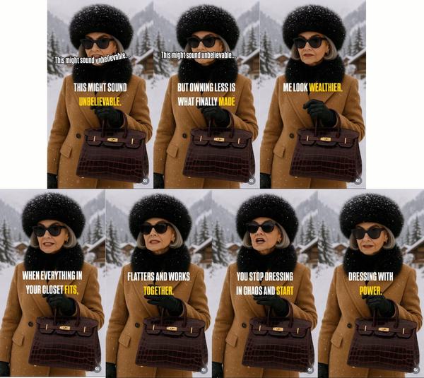 they won't magically recognize your worth at 70. Let it Go, Darling 4. Repeating outfits is classy. Needing new ones every week is chaotic 5. Elegance isn't expensive. Discipline is. Man - I'm all over every one of those, maybe a little less on #2 (I can find some pretty neat shoe deals on Amazon that are pretty classy looking), but the rest of these are right on the target. Here's another...