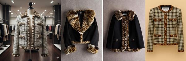 Again, not bad. The Google Gemini (left) is a little puffy, but it has leopard fur trim, all right!!! The Microsoft CoPilot on the (right) is pretty conservative, and can barely tell if it's fur or not. The Grok (middle) is my fav,
