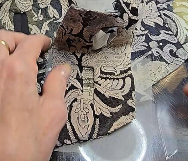 buttonhole. Bound buttonholes look great from the outside, but on the inside they are a mess. So you only work one thickness of the fabric, because they do look so sloppy on the inside. However, if I could make this neat square (like the one below), I could actually have a very lovely opening in the back.