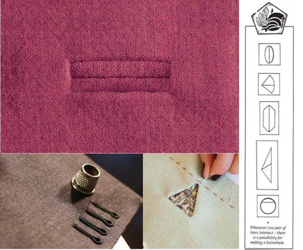 Most of these are from some Diane Ericson books that I have and from Threads Magazine. But I love Diane's quote at the bottom of the page - "Whenever two pair of lines intersect - there is a possibility for making a buttonhole!" She does make a great