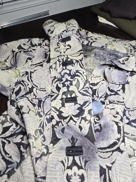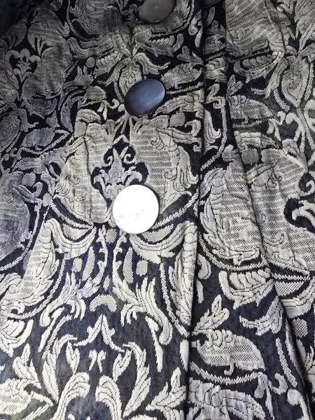 This was more than a job, it was a gift, and as such I didn't mind spending the extra time to do something like this, as most of my clients This is the extra detail I'm talking about. This jacket already has a pretty in-your-face feature in the buttons from my grandmother's old coat, so anything else is either going to be overkill or it's going to be compete with the buttons. The buttonholes need to be sturdy because of the nature of the fabric. And since it's my jacket, I can take the extra time to do some remarkably