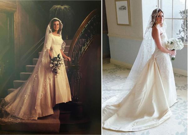 But there were some beautiful shots of the bride in the paternal grandmother's gown, and with the maternal grandmother's veil.