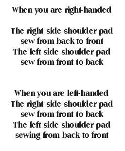 Also, in the video, I discussed the direction you want to sew the pads. This is because you want a roll on the shoulder. Don't ever sew these in flat on a flat
